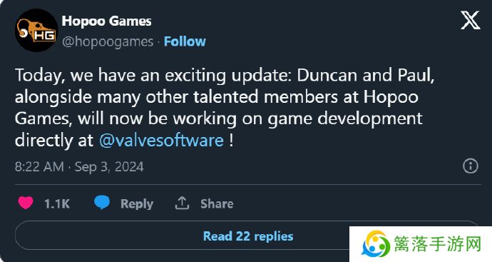 据《雨中冒险》系列开发商Hopoo Games社交平台连发三条消息,表明自己目前已经加入Valve,为V社开发游戏。